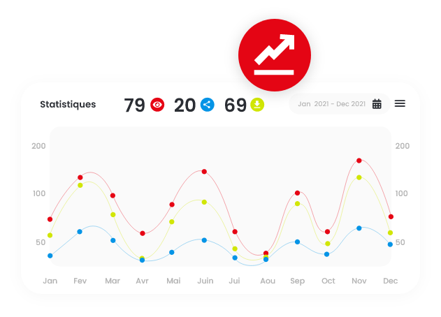 Evaluez les données de vos évènements grâce au suivi de statistiques sur votre espace client. Identifiez quels sont vos médias les plus consultés, combien de fois votre NextCard a été partagé et bien plus encore.