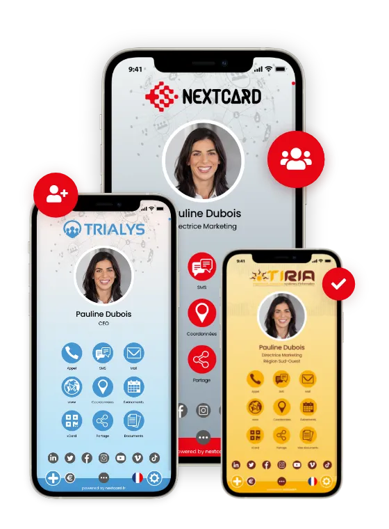 Vous cherchez une façon innovante de gérer et organiser vos cartes de visite tout en représentant plusieurs marques ? NextCard vous permet de créer des cartes de visite pour chacune de vos activités, tout en les regroupant par catégories pour une organisation plus efficace et personnalisée.